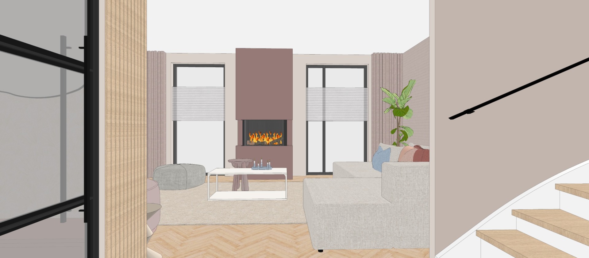 3D ontwerp zichtlijn op haard