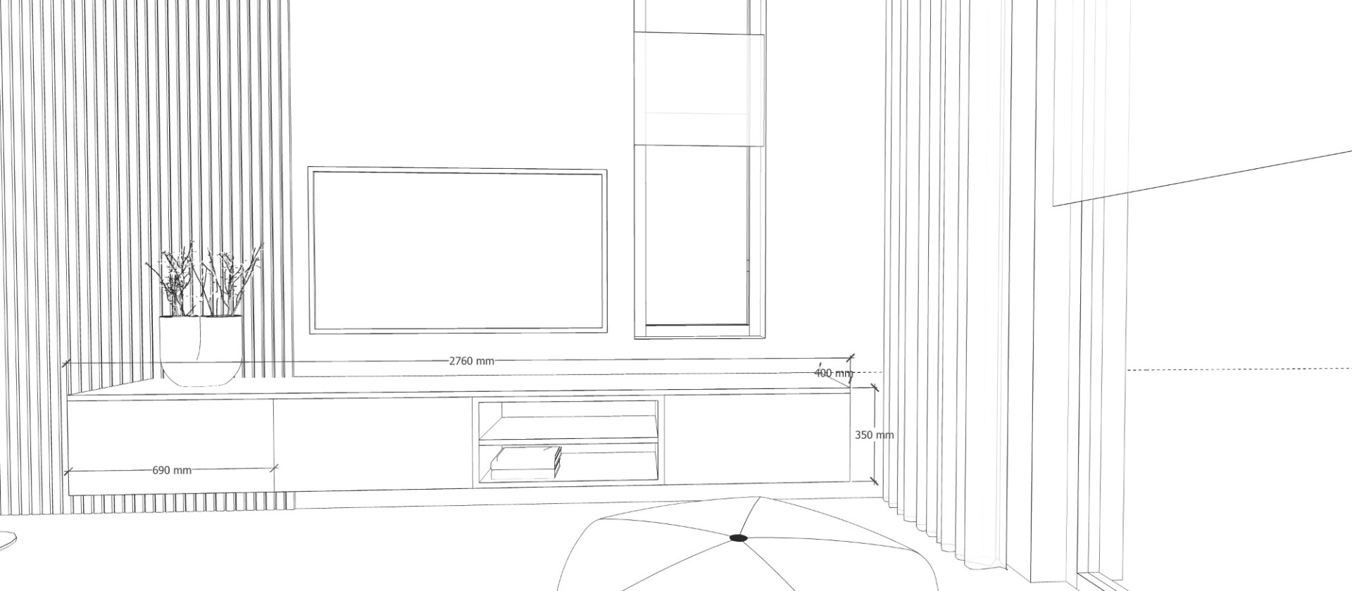 3D schetsontwerp maatwerk tv meubel