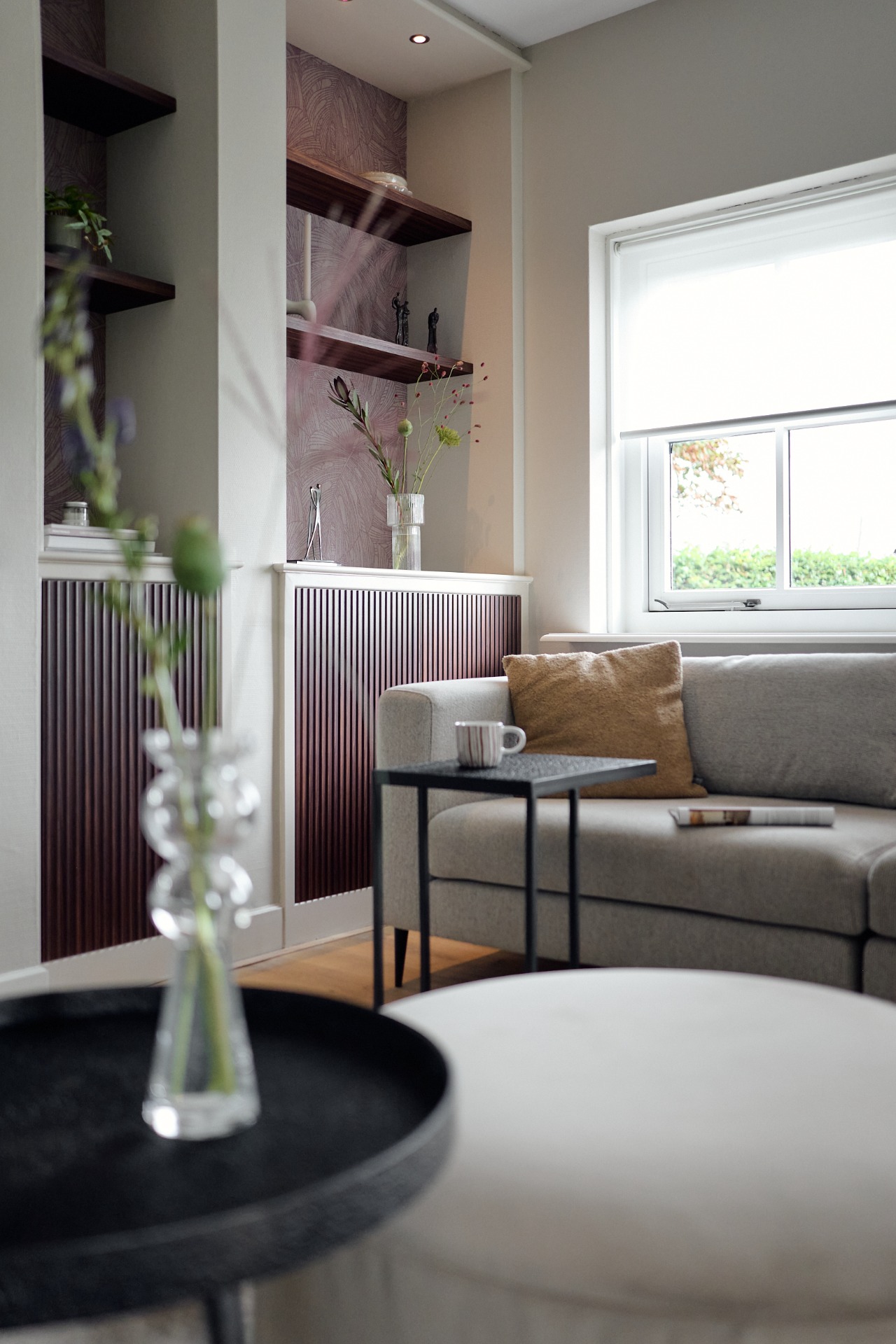 Een ontwerp van Rondom Stijl herken je aan een rustige basis met een mix van natuurlijke materialen en vormen die ruimtes met elkaar verbinden. Juist die verbinding zorgt ervoor dat de ruimte een eenheid vormt en prettig aanvoelt. Als de basis goed is heeft het interieur weinig accessoires nodig waardoor er aandacht is voor die bijzondere items als een kunstwerk, souvenir of familiestuk die het interieur persoonlijk maken.